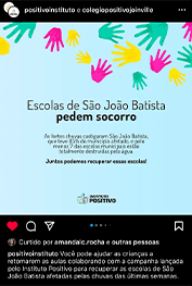 O valor arrecadado em cada uma delas foi dobrado pelo Instituto e revertido em insumos demandados pelas escolas, conforme avaliação do prejuízo sofrido com as águas